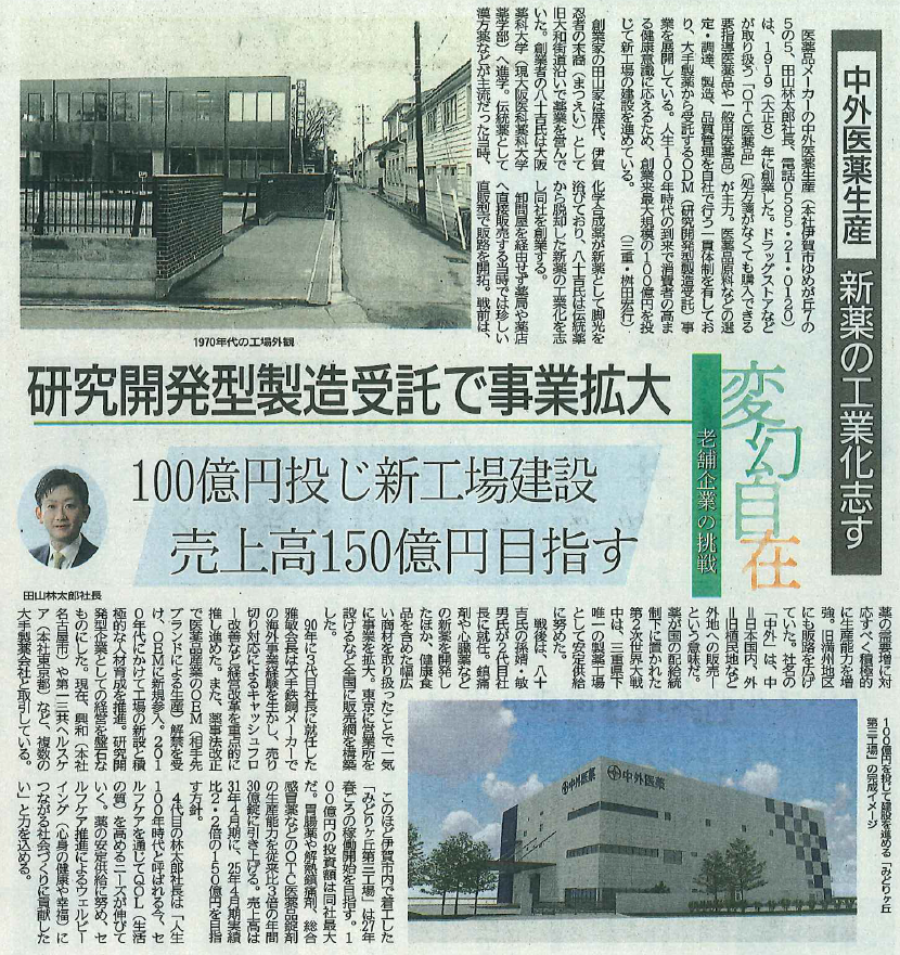 中部経済新聞「変幻自在~老舗企業の挑戦~」に掲載されました