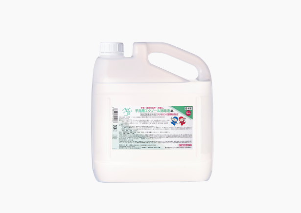 国産(当社本社工場にて製造)の消毒液です。厚生労働省より新型コロナウィルス(COVID-19)対策として推奨されている高濃度(約79%)のアルコールを配合しています。グリセリンを配合しており、手にやさしく、複数回使用しても手荒れしにくい仕様となっています。液体タイプですので、素早くなじみ、さらっとした使用感です。